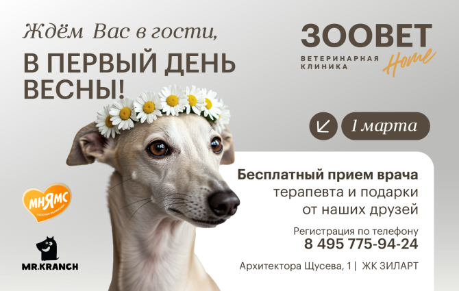 Мы с радостью сообщаем об открытии нового филиала нашей ветеринарной клиники в Москве по адресу ул. Архитектора Щусева, дом 1, в современном и динамично развивающемся районе Зиларт. Этот шаг стал важным этапом в развитии нашей сети и отражает стремление сделать качественные ветеринарные услуги ещё более доступными для владельцев домашних животных столицы!