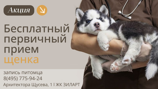 Дорогие владельцы щенков и котят! У нас для вас потрясающая новость! Наша ветеринарная клиника "ЗООВЕТ" запускает акцию – бесплатный первичный приём для ваших питомцев. Ваши малыши в возрасте до года могут пройти профессиональный осмотр абсолютно БЕСПЛАТНО!